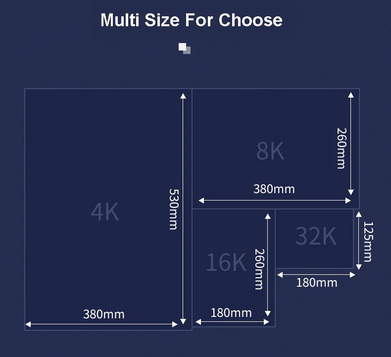 Size: 210mm*150mm; 310mm*210mm; 410mm*310mm; 260mm*260mm; 380mm*260mm.