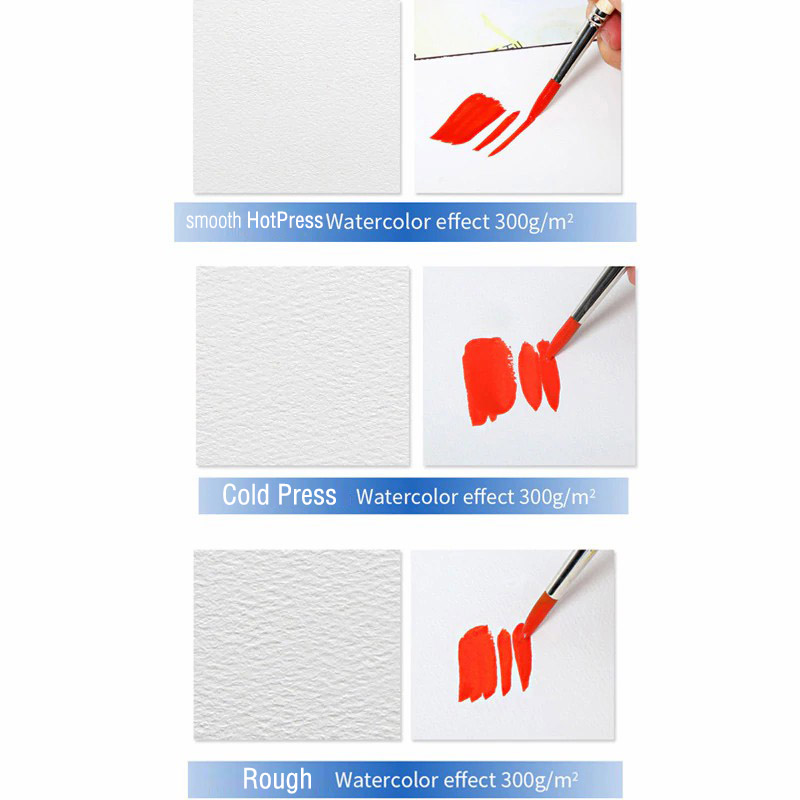 cottom pulp watercolor,watercolor paper is divided into (Smooth/Hot Press,medium grain/Cold Press, Rough/coarse grain) Texture clear ,resistant scrub.can be modified ,natural white ,suitable for watercolor painting
