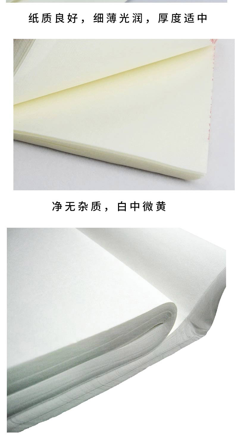 Sheng Xuan/Raw is a type of Xuan paper that is usually not processed, and has high ink absorbance abilities and has high flexibility. It is difficult for beginners to use Sheng Xuan paper because the ink is absorbed quickly, causing it to blur. Sheng Xuan Paper is often used for Xieyi (寫意) – a traditional type of Chinese painting – as well as writing scripts like semi-cursive (行書) and cursive (草書) (which usually have more flexibility and personal style).