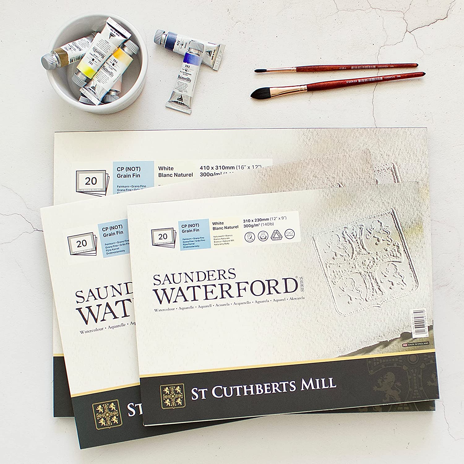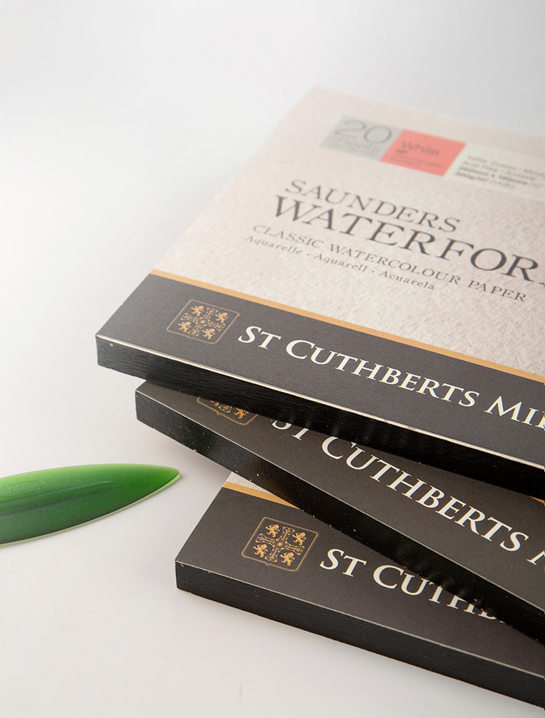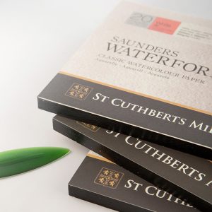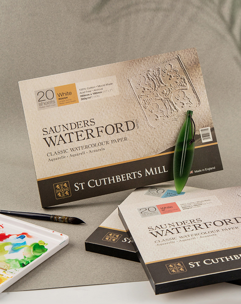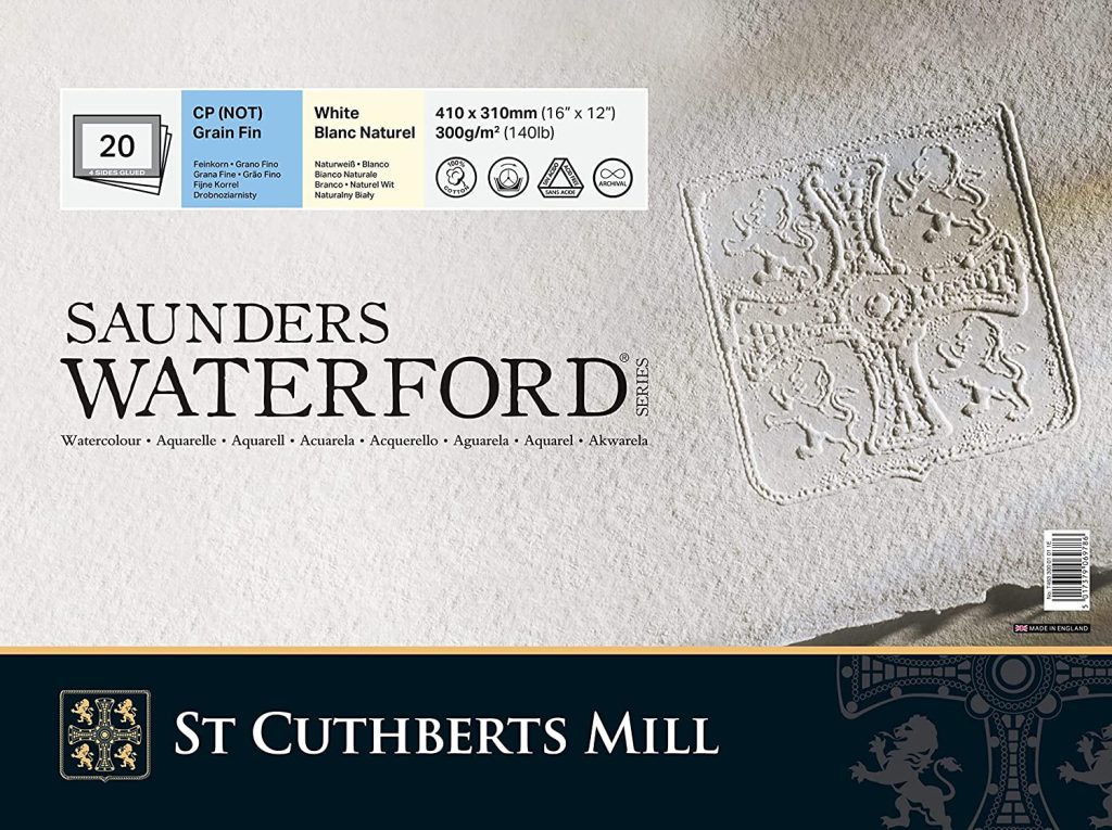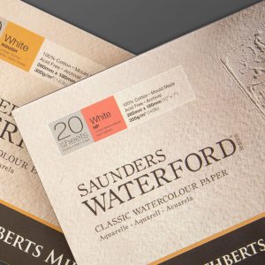 St Cuthberts Mill Saunders Waterford Watercolor Paper 300 g/m², fine Grain, Watercolor Block glued All Around, 20 Sheets, Natural White