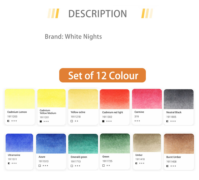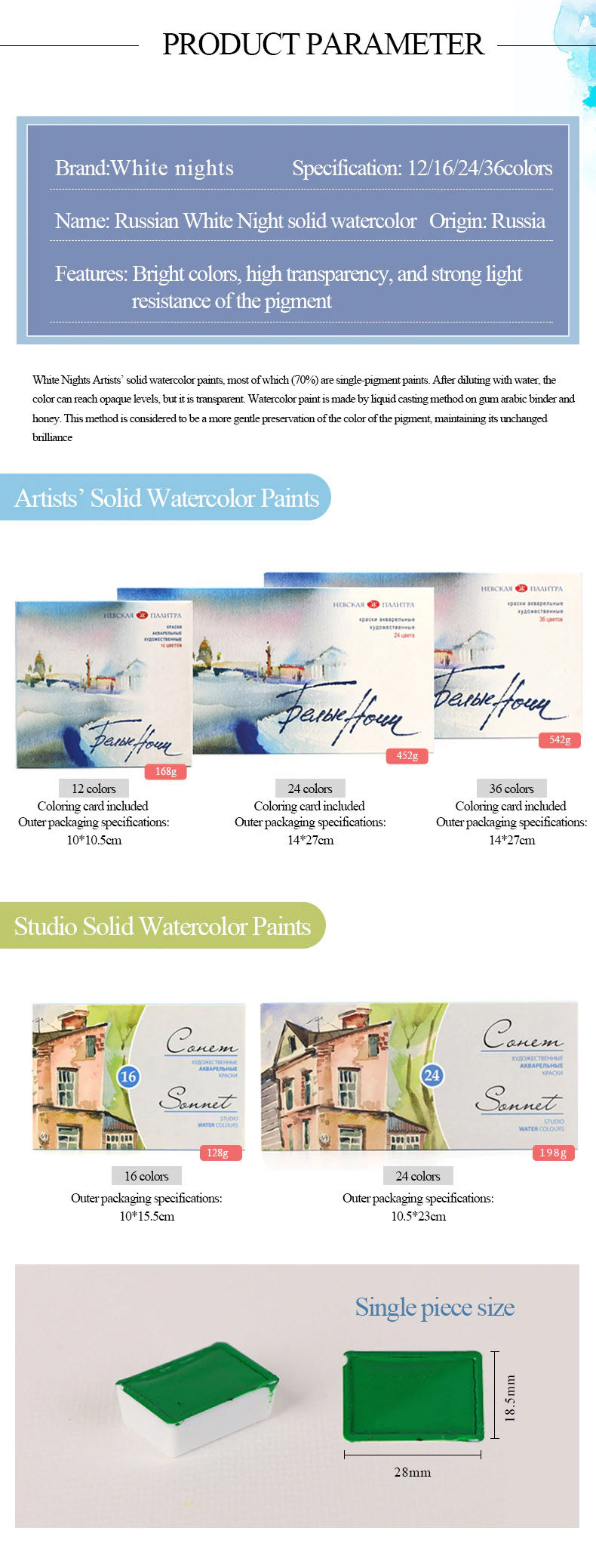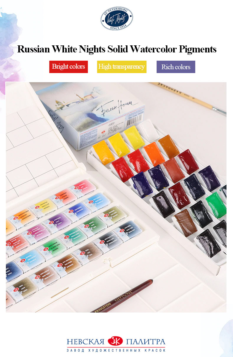 Russian White Nights Solid Watercolor Paints Conem Sonnet Student/Artist Grade 12/16/24/36 Colors Painting Water Color Pigments HEBCKAЯ . ПАЛHTРА ЗАвод худоЖЕСТВЕННЫХ КРАСОК
