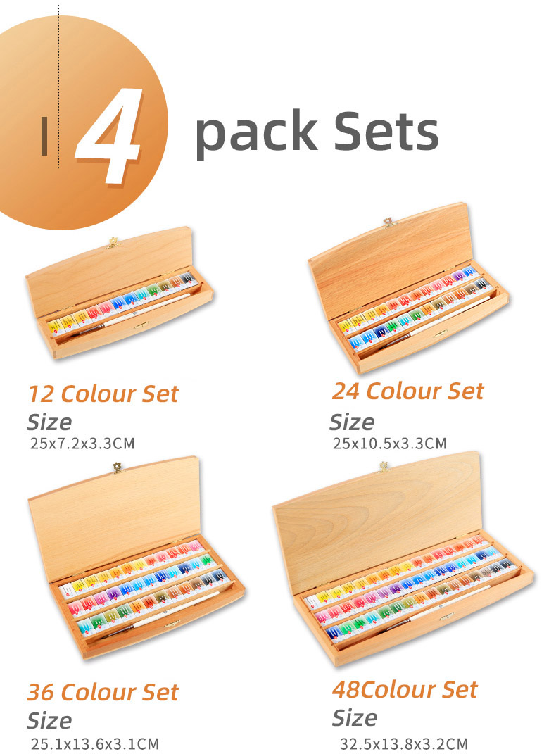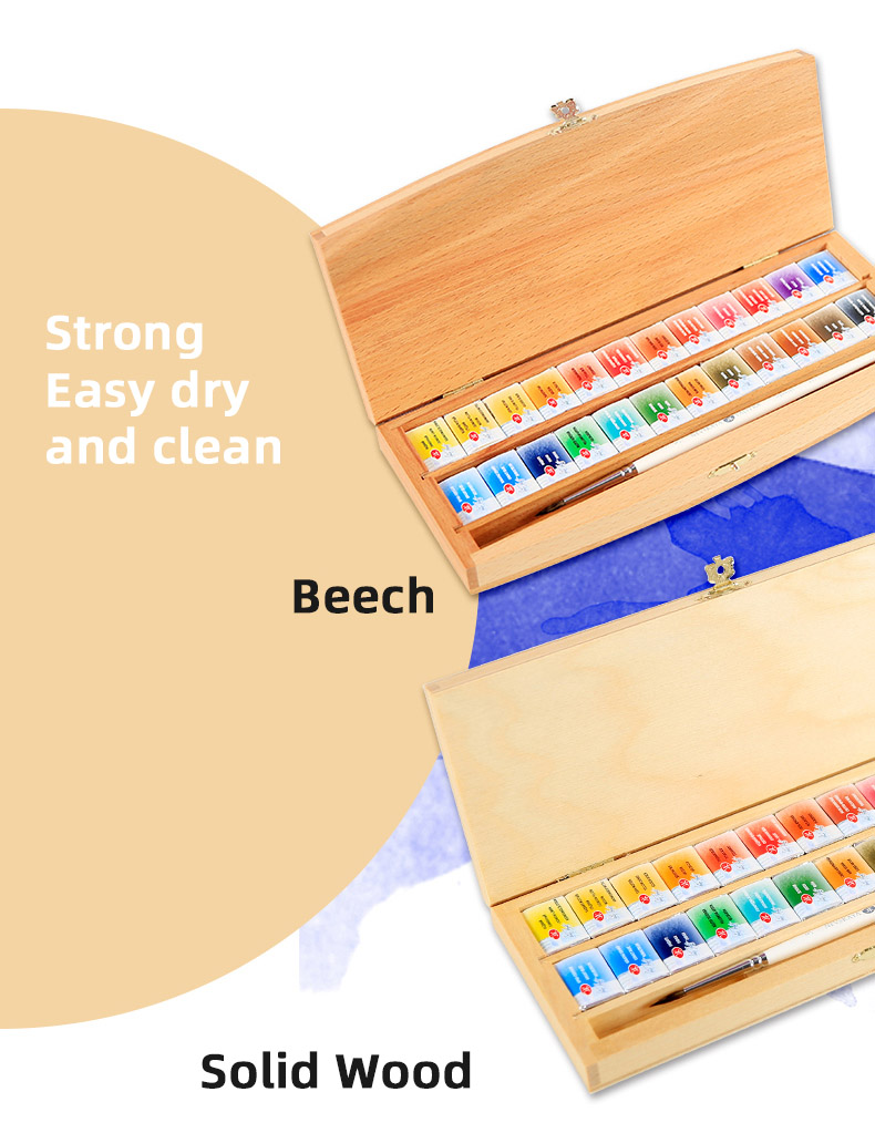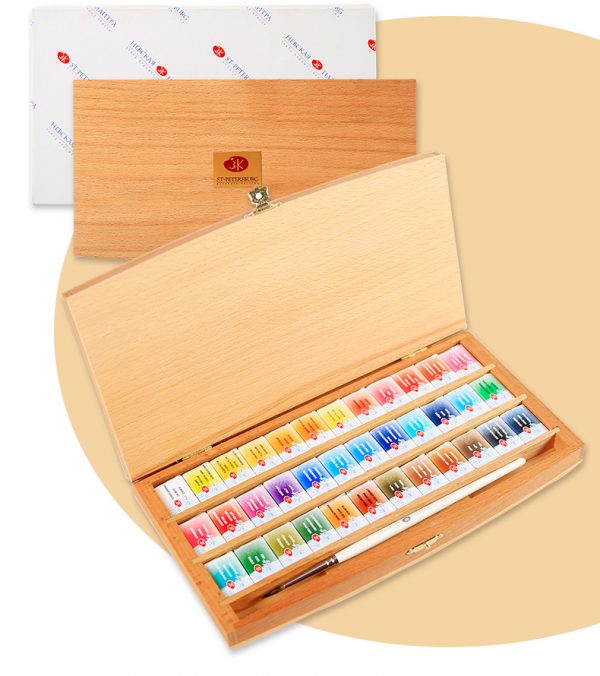 White Nights Watercolor Paint Set in Beech Box, Sable Brush