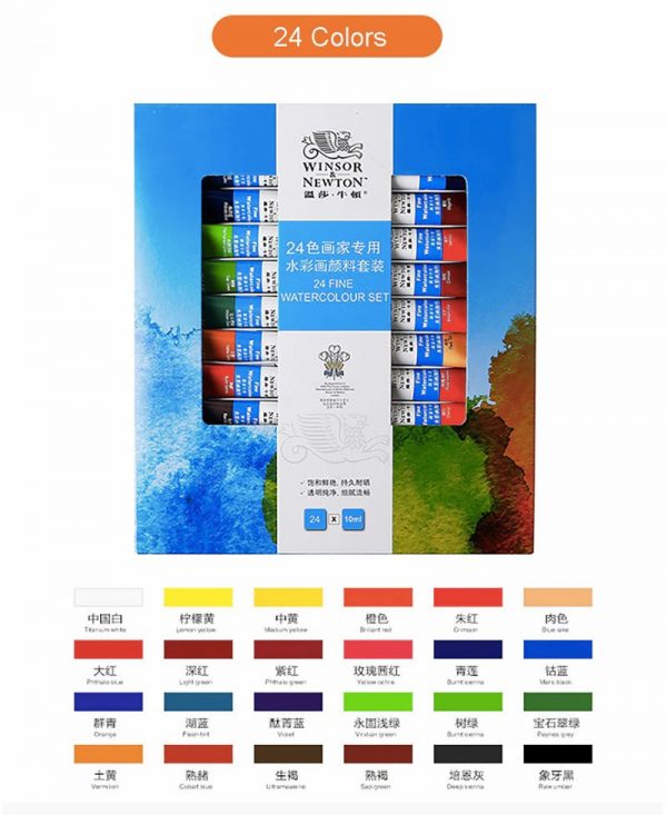 Edu Version Winsor & Newton Artist Watercolor Paint Tube 10ml 12/18/24colour, Artist Transparent Watercolour Aquarelle For Painting Art Supplies