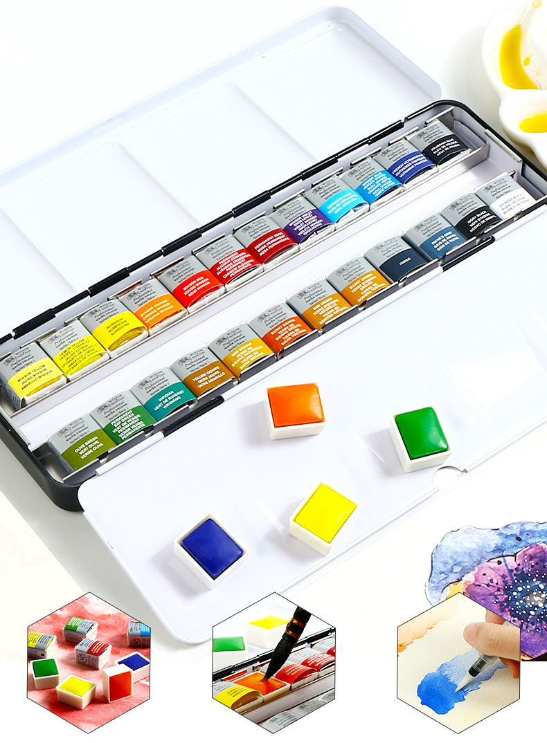 Winsor Newton Cotman/Artist Professional Watercolor Solid Pigment, 12/24 Colors Tin Box Set , Artist Level Watercolor,Art supplies